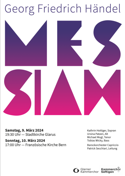 10.03. 2024, BERN, SWITZERLAND Französische Kirche Bern, 17h Kathrin Hottiger, Sopran Ursina Patzen, Alt Michael Mogl, Tenor Tobias Wicky, Bass Barockorchester Capriccio Patrick Secchiari, Leitung